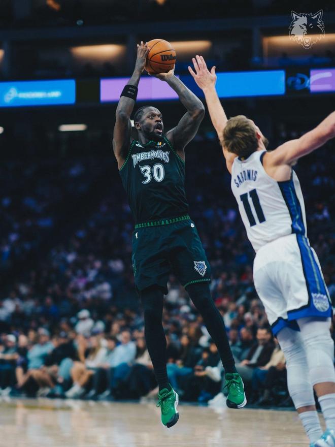 森林狼队,麦克丹尼尔斯10中8轰下了21分5板3助2帽、里德14中5,三分球9中3得到13分4板2助2断、克拉克11分2板1助、迪林厄姆11分3助、迪文琴佐7中2,三分球6中1得到8分4板4助2断、康利6分3板3助、海兰德4分1板、朱赞2分2板。